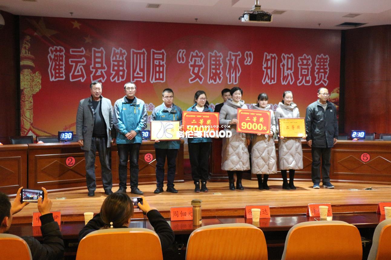 為弘揚安全文化,普及安全知識,不斷提高全社會對安全工作重要性的認識,灌云縣安監局于2018年12月19日下午,在灌云縣規劃館三樓,隆重舉行灌云縣第四屆“安康杯”知識競賽。公司安環部的徐霞明、徐鴻茹和趙云林代表科倫多參加了競賽。競賽現場氣氛熱烈,經過幾輪緊張的必答和搶答,最終科倫多代表隊獲得團體第二名。圖為競賽結束以后頒獎時的場景圖片。