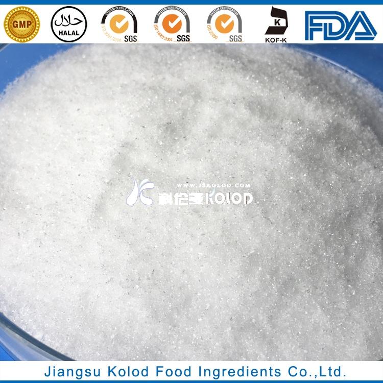 五、性狀:白色到無色晶體。無臭, 有清涼咸辣味。過熱分解,在潮濕的環(huán)境中微有潮解,在熱空氣中微有風(fēng)化。加熱至150℃失去結(jié)晶水。易溶于水、可溶于甘油、難溶于醇類及其他有機溶劑.